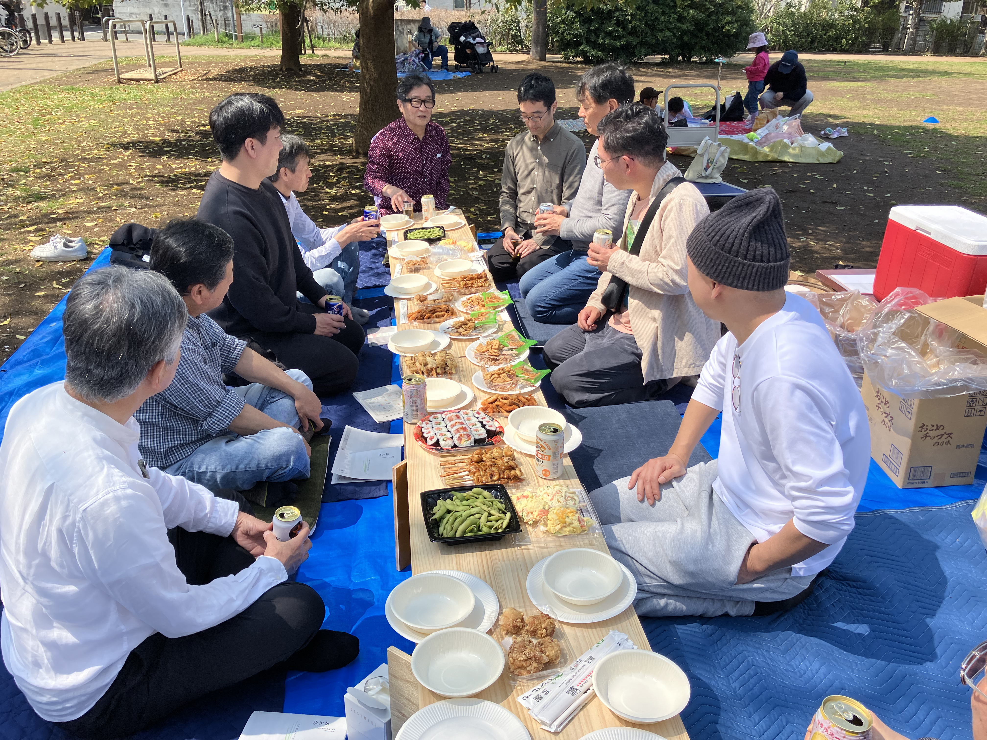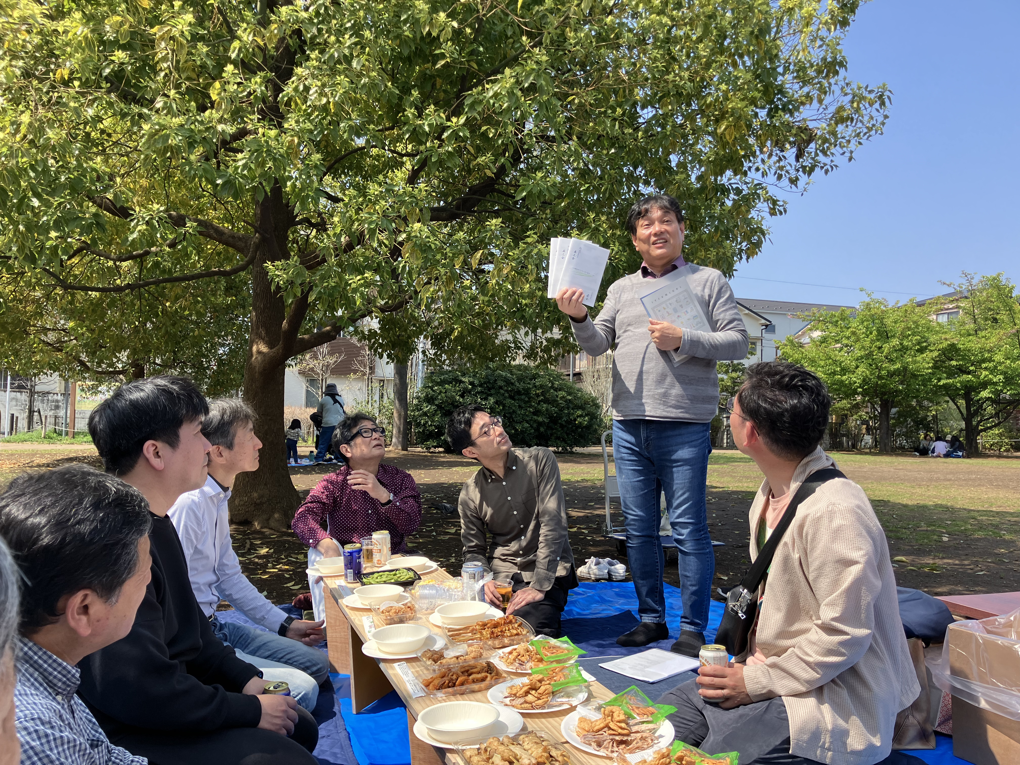 本年度は晴天のため、屋外(下板橋駅沿い 電車の見える公園)でのお花見の会として実施できました。
