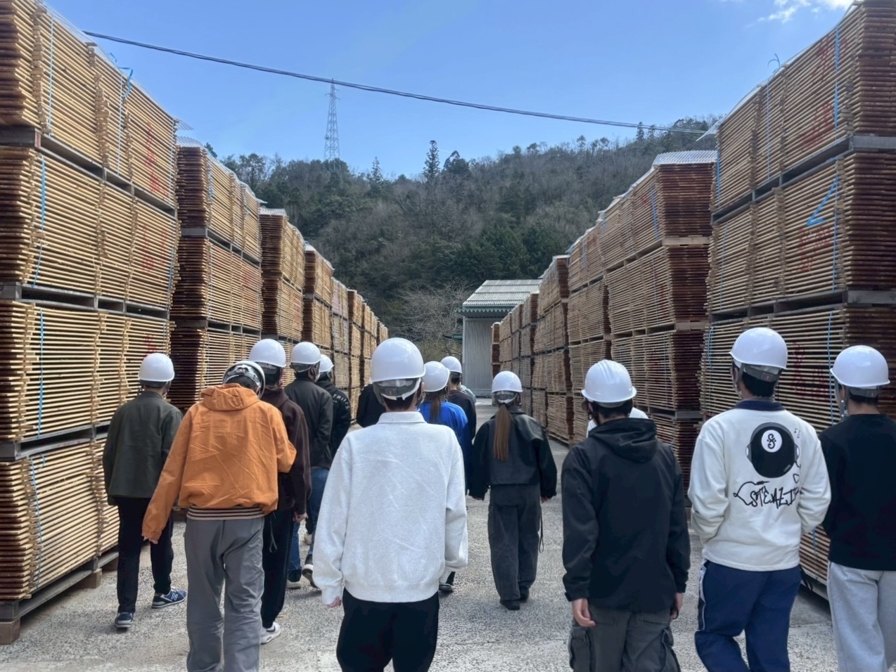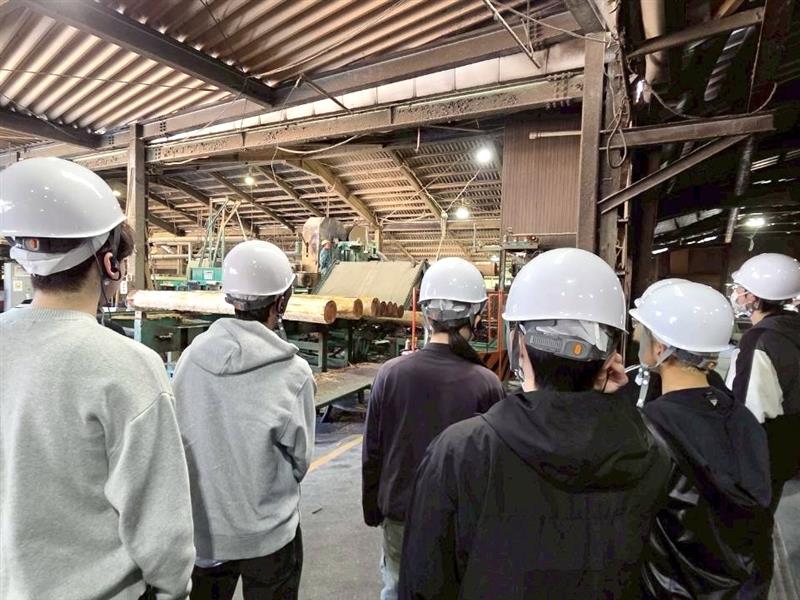 今年も天候に恵まれ、1日目はバス移動による学外開催を実施できました。昨年度と同様、県立もみの木森林公園や中本造林、加えて1,4号車はウッドワン、2,3号車はマルニ木工へも見学させていただきました。