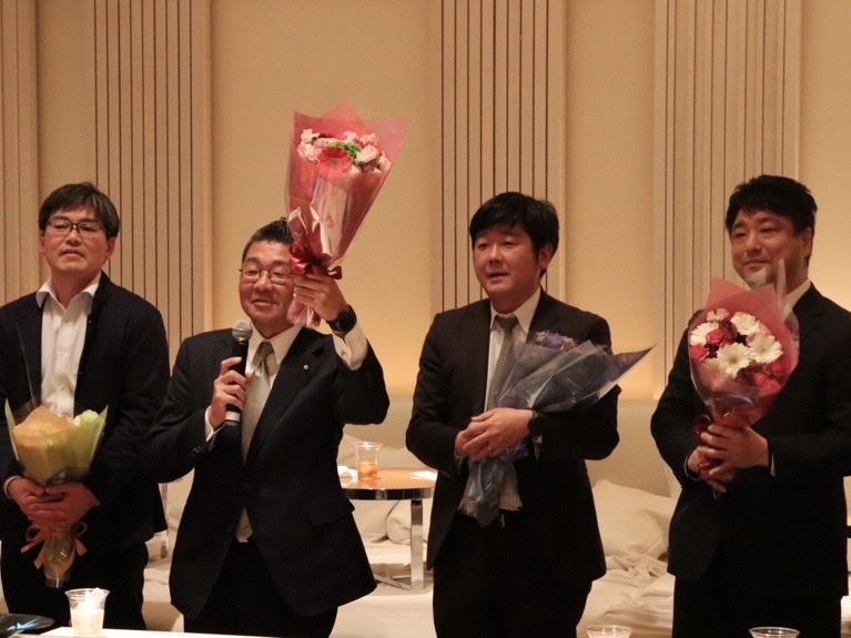 パーティーの後半では、匠会メンバー一同より、各ゼミ長が代表となって先生方への花束贈呈が行われ、各先生方からのあいさつをいただきました。
